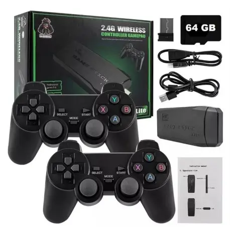 GAME STICK es una consola de video juegos multiplataforma con capacidad para más de 10.000 juegos de 9 consolas diferentes, entre ellas las más populares como PlayStation, Nintendo y Sega, haciendote revivir la magia de los video juegos retro desde el año 1980 hasta el 2003.